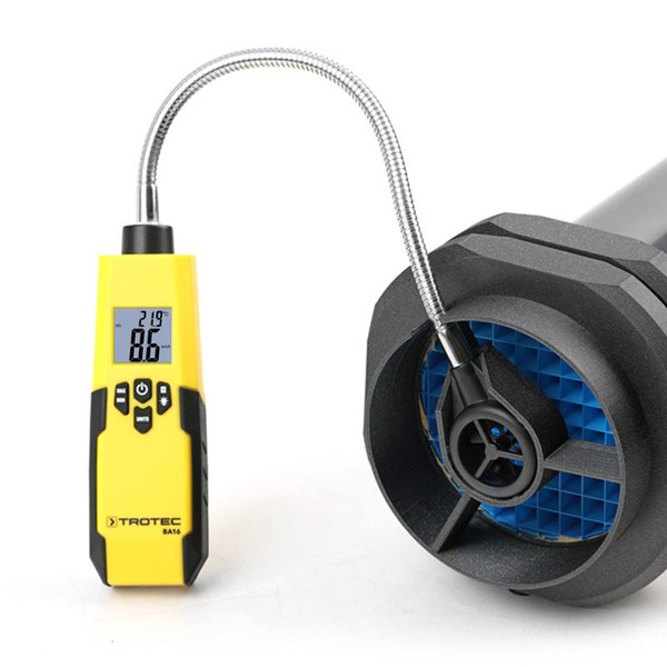 The Trotec BA16 is an anemometer capable of measuring cubic airflow volumes, airspeed and air temperature.