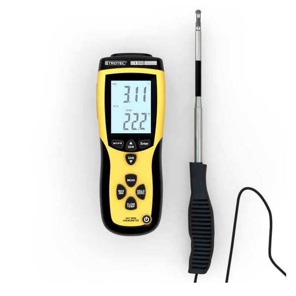 The Trotec TA300 is a hot-wire anemometer used primarily for measuring volumetric airflow. For measurements in ducts or remote locations the handheld probe from the TA300 can steplessly be extended to an effective length of one metre.