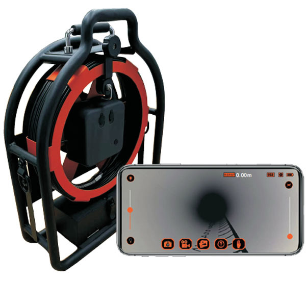 Convenient and economical plumbers compact CCTV cameras system with wireless connectivity and smart apps for recording of images and video in domestic pipe networks.