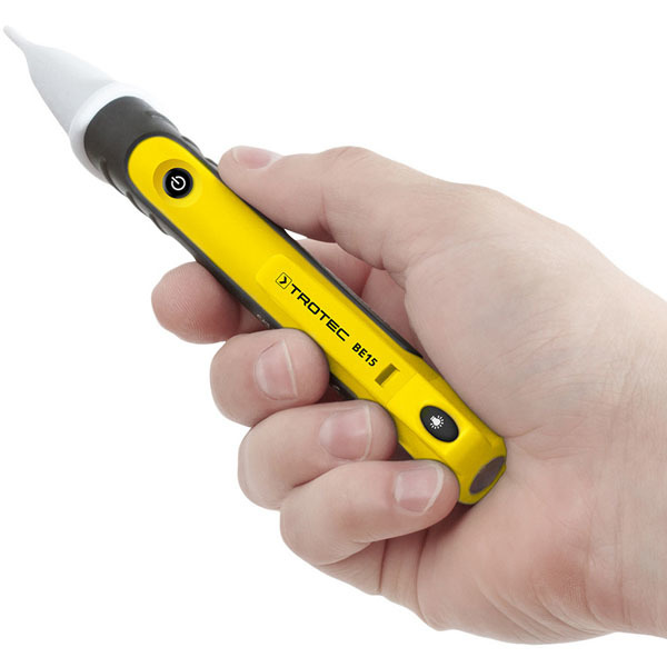 The BE15 from Trotec enables a quick, non-contact detection of alternating voltages in two selectable sensitivity levels (200 V and 24 V).