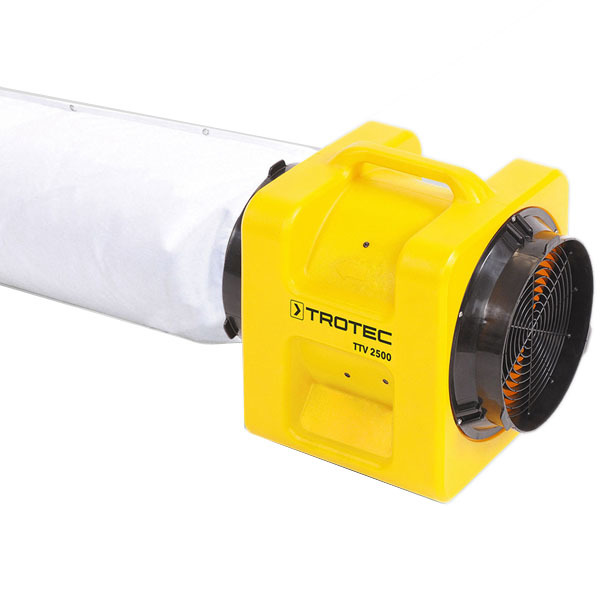 Optional 305mm flexible 7.6m hoses can be attached to the TTV3000 to distribute the air into confined spaces or to further away locations. A washable 3m dust bag can also be attached to the rear of the fan and filters dust and dirt particles reliably out of the air.