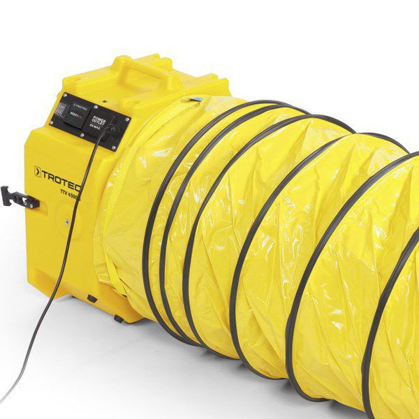 Optional 525mm flexible 7.6m hoses can be attached to the TTV4500S to distribute the air into confined spaces or to further away locations. A washable 5m dust bag can also be attached to the rear of the fan and filters dust and dirt particles reliably out of the air.