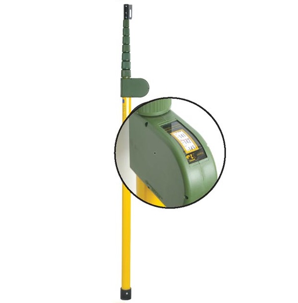 8meter durable height adjustable fiberglass rod with built-in tape measure for easy reading of height measurements.