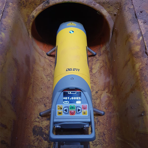 New for 2025, the Spectra Precision DG211 is a compact and economical automatic dial-in self-leveling pipe laser capable of fitting inside a 4" (102mm) pipe.