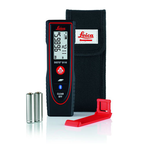 | Leica Disto D110 Laser Tape Measure | Disto D110, AAA batteries, pocket clip, quick start guide and soft case. |