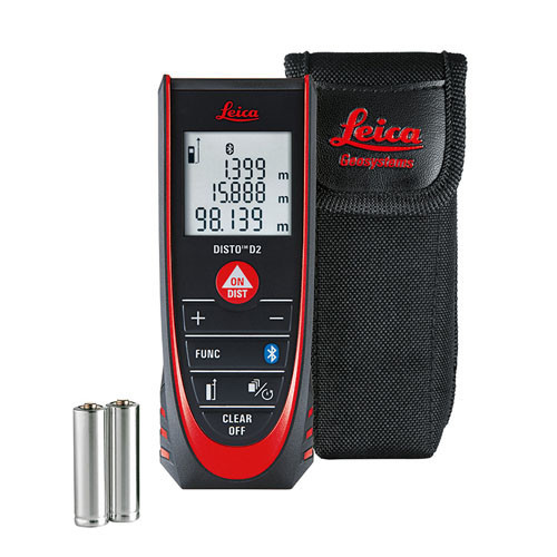 | Leica Disto D2 Laser Tape Measure | Disto D2, AAA batteries, quick start guide, user manual and soft case. |
