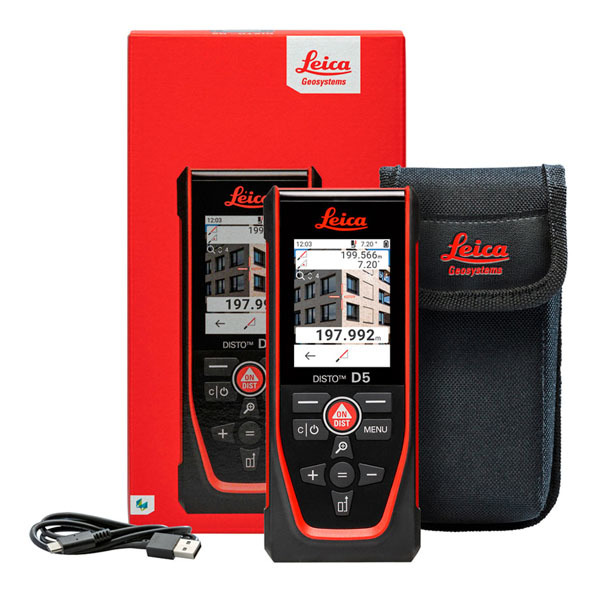 | Leica Disto D5 Laser Tape Measure | Disto D5, rechargeable battery including USB-C charger, lanyard, quick start guide and soft case. |