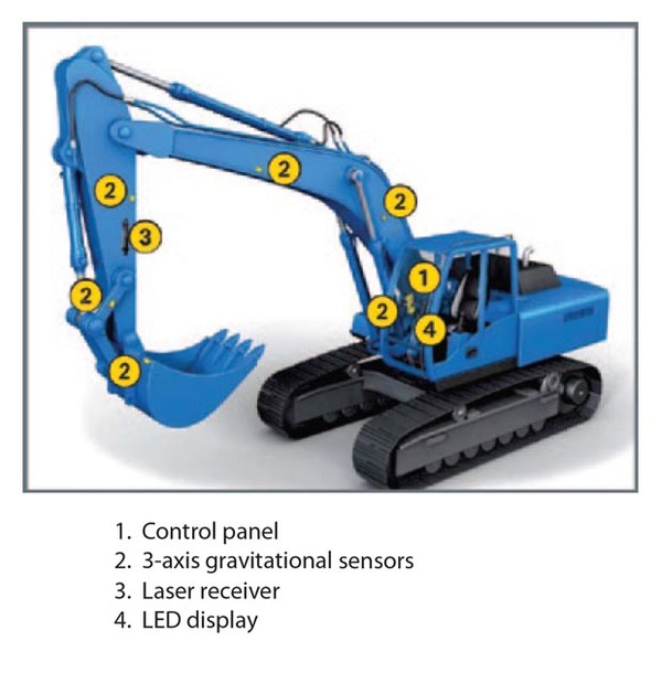 The system‘s basic functions include the measurement of depth, slope and distance from the excavator of the bucket. The operator can generate a profile directly on the display, consisting of several levels and slopes. The position and status of the bucket are displayed in realtime on the panel. The operator is thus assured of precisely obtaining the desired excavation depth at all times. The system can be upgraded with a laser receiver, an external LED display, a cross-slope sensor on the bucket and a GNSS sensor. Manual site surveys can be dispensed if using RTK GNSS positioning and background maps as the excavator becomes the surveying equipment! Thus time and money are saved through less personnel on site and less man-hours. The 3D version of Link continuously displays height and machine data and simple 3D models are created directly on the screen.