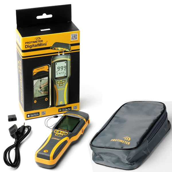 | Protimeter Digital Mini Moisture Meter | Mini BLD5775, 2x AA batteries, hand probe, operating guide with wood correction chart, soft case. |