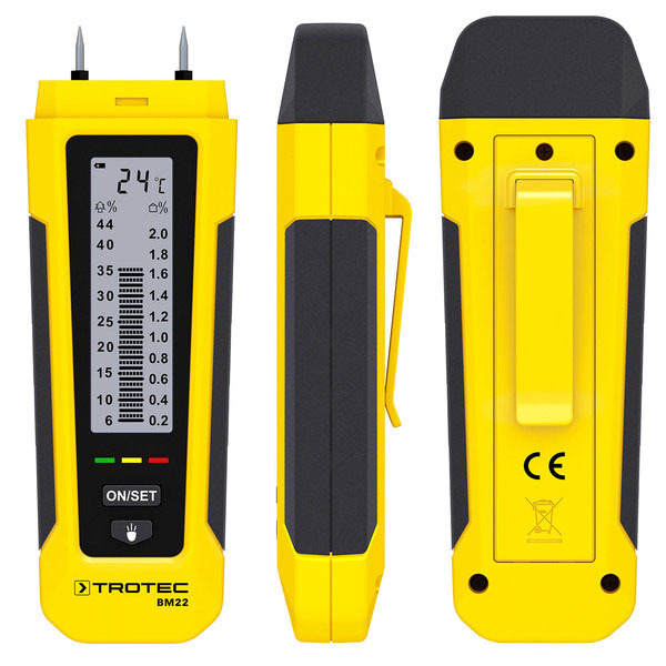 The BM22 from Trotec is a low cost resistance moisture meter for measuring the % of moisture in the timber.