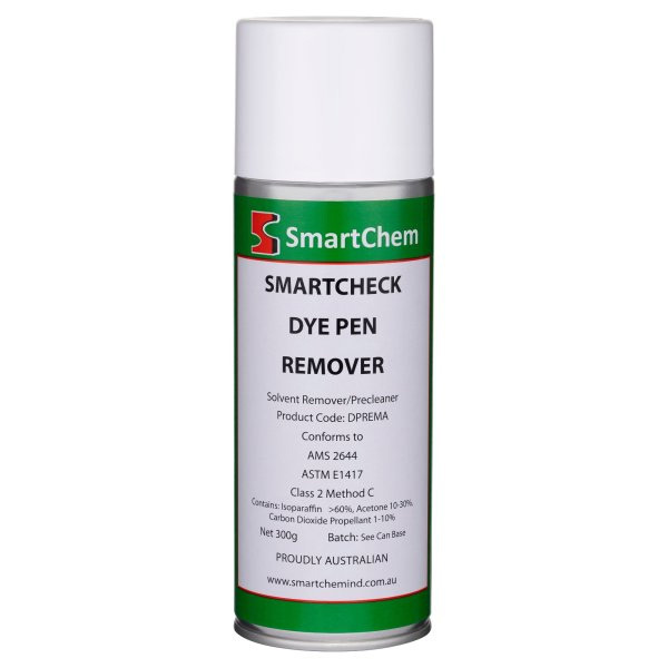 Smartcheck Dye Pen Remover is a non-chlorinated remover/pre cleaner for the dye penetrant process used to detect surface flaws such as cracks, laps and porosity in ferrous and non ferrous materials including non porous ceramics and some plastics. It is also an effective general purpose degreaser