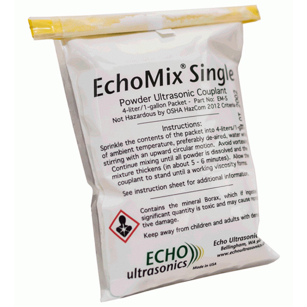 EchoMix Single is a powdered ultrasonic couplant, designed to be mixed with water, for use in ultrasonic testing, flaw detection and thickness gaging.