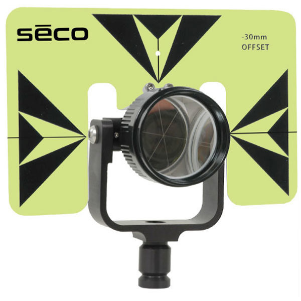 Seco's premier range 62mm single prism with -30mm offset, stainless steel construction tilting target in highly visible fluorescent yellow colour.