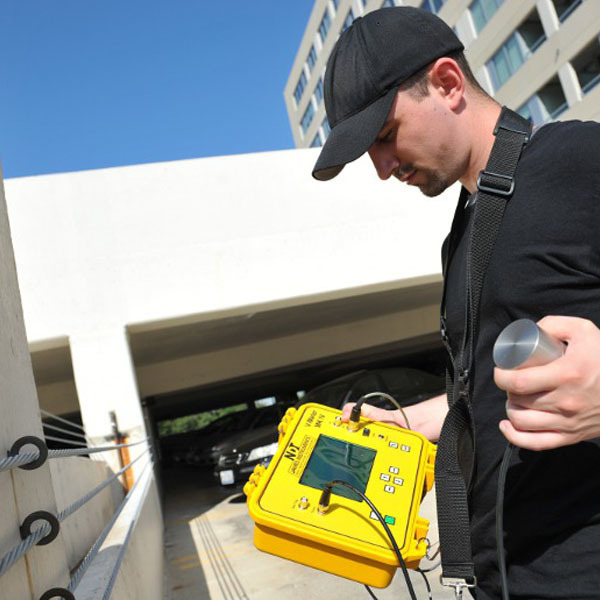 The V-Meter MK IV™ is widely used and accepted for quality control and inspection of concrete. It can measure and correlate concrete strength to standard strength measurement, permitting non-destructive testing of complete structures. It will identify honeycombs, voids, frozen concrete, cracks and other non-homogenous conditions in concrete. Ultrasonic testing can be applied to new and old structures, slabs, columns, walls, fire damaged areas, hydroelectric structures, pipe, prefab and pre-stressed beams, cylinders and other concrete forms. A wide range of transducers are available.