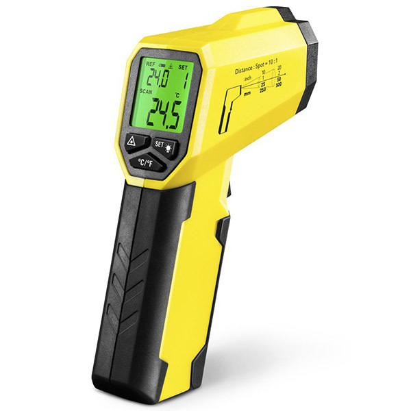 You can define a reference temperature with the BP17, and possible deviations to the reference measurement can be indicated by means of both visual and acoustical alarm signals. When setting the tolerance range, you can choose between 1 °C, 3 °C and 5 °C. and a single laser pointer. For low light conditions, the BP17 features backlit display.