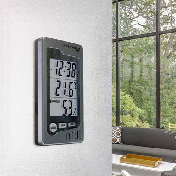 The BZ05 is a desk or wall mounted thermohygrometer that can measure air temperature and relative humidity quickly and reliably and display the readings together with the time and date in large, easy-to-read values.