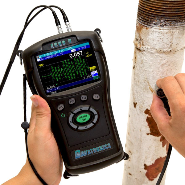 The ECHO 9 from Danatronics is an advanced ultrasonic thickness gauge with a simultaneous live color A-Scan and Thickness display