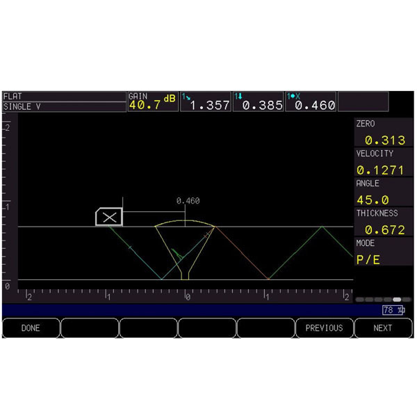 - Auto Calibration: Velocity, Zero Offset, Straight Beam (First Backwall or Echo-to-Echo), Angle Beam (Soundpath or Depth)